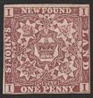 1857-64 Crown & Flowers 1d brown-purple. VFM, 4 margins. SG 1 cat £200. Unitrade 1 cat C$160.