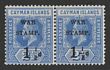 1917 'WAR STAMP 1½d' opt KGV 2½d deep blue, horiz pr, left stamp variety 'almost no fraction bar' VF fresh MLH. SG 53/53a cat £297+ as singles, plus premium for positional setenant pr which should be +50% so est cat £445. (P)