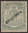 1912-25 KGV 500R dull green, diag opt local SPECIMEN type CE4 (21x2mm) instead of the usual horiz type D12. VF MLH, trace of pressed horiz crease. Scott 217(s) cat US$8750 as normal. SG 322s(var) cat £800+++, plus premium for the rare local specimen (normal cat £8500). Rare high value. (P)