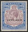 1921-32 KGV 100R dull purple & blue, wmk script, opt SPECIMEN. Superb fresh MUH with, pristine never hinged original gum. SG 360s cat £650 for M, should be at least double, £1300 MUH (normal cat £2750 M, £5500 MUH). (P)