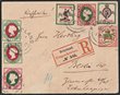 Heligoland: 1890 QV 5pf, 10pf, Arms 20pf, QV 25pf, 50pf plus Numeral 1Mk & 5Mk, all on Registered cover, tied by 'HELIGOLAND AU 6 1890' cds, to Berlin b/s 11.8.90 cds. Scott 16-19, 21, 22, 23 cat US$1482+. SG 13-19 cat £1462+ both as loose stamps alone & 'from x3' on cover. Very attractive & rare philatelic item. (P) |
