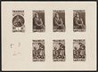 1928 Christmas Charity set 40c-10Fr composite imperf PROOF sheetlet in sepia colour of issued 40c, normal paper (155x113mm), with the 10Fr being rejected ESSAY design that has '10F+10F' denomination at sides which was changed to just '10F' in centre. Superb fresh, MLH in margin, stamps MUH, 'no 3 40c' m/s at left. SG 128-34(p). Mi 128-34 PKLB cat €2000 for M or €4000 MUH (singles would still cat €3500). Extremely rare, only several printed. 2024 Ceremuga photo cert. (P) |