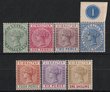 1898 QV Sterling Currency set ½d to 1/- VF fresh M/MLH. Scott ex 9-21 cat SU$245. SG 39-45 cat £200. (7). (P) |