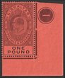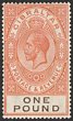 1925-32 KGV £1 red-orange & black. VF fresh M. Scott 92 cat US$210. SG 107 cat £190. (P) |