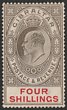 1906-11 KEVII 4/- black & carmine. Superb fresh MLH. Scott 62 cat US$200. SG 73 cat £180. (P) |