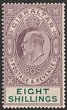 1906-11 KEVII 8/- purple & green. F-VF fresh M. Scott 63 cat US$330. SG 74 cat £300. (P) |