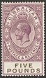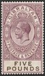 1925-32 KGV £5 violet & black. VF fresh MLH, nice original gum & deep colours Scott 93 cat US$1750. SG 108 cat £1600. Rare top value. (P) |