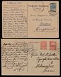 Postal History 1919-22 group with 1919 use of Tallinn PPC franked 35p blue imperf tied by Eesti cds - to England. 1920 card franked 15p red & 35p red tied Eesti pmk - to Finland, 1921 cover for Mechanical Woodworking Company franked 10p green, 15p red & 1Mk blue & purple-black, tied Tallin 1920 pmk - to Finland. 1922 card franked 2.50Mk pr tied by 'Wiljandi 23 2 22' cds. SG 7, 8, 9, 11, 18 & 23. Mi 7, 9, 10, 12, 16 & 28. (4)