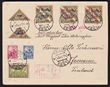 1923 Airmail opt set 5m-45m/5m (2 triangles & 3 triangle prs), plus 3 defins, tied to Registered Airmail cover by 'Tallinn 15 11 24' cds, with h/s reg label/cachet. To Finland, with b/s of Helsinki & Joensuu arrival cds. VF. Mi 41-45, SG 44-48a cat £785++ as loose stamps alone, plus large premium on cover. Purchased by vendor in 1990s for DM1100 = A$920. 2019 Ceremuga photo cert. (P)
