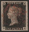 1840 QV 1d black, plate 1b, letters MA. Superb VFU, 4 large margins, red Maltese Cross pmk. Scott 1-pl1b cat US$425. SG Spec AS4. SG 2-pl1b cat £425+. (P) |