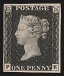1840 QV 1d black, plate 1b, letters PE. Superb fresh UN with 4 large margins. Scott 1 cat US$14,250, SG Spec AS5, SG 2-PL1b cat £12,500. Rare genuine unused in excellent quality. Certificate can be obtained on request. (P) |