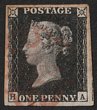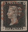 1840 QV 1d black, plate 6, letters GH. VFU, 4 margins, red Maltese Cross pmk. Scott 1-pl6 cat US$425. SG Spec AS40. SG 2-pl 6 cat £425. (P) |