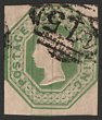 1847-54 QV Embossed 1/- green. F-VFU, cut square with 3 margins. Scott 5a cat US$1000. SG 55 cat £1000. (P) |