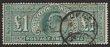 1929 KGV UPU £1 black. VFU. Scott 209 cat US$600. SG 438 cat £600. (P) |