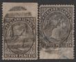 1878-79 QV 4d grey-black, no wmk, thin paper, both top marginal & bottom marginal IMPERF between stamps & margin. VFU, barred oval pmks. Scott 2(var) cat US$400+. SG 2(var) cat £320+. (2) (P)