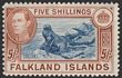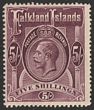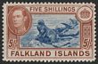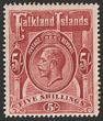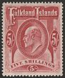 1904-12 KEVII 5/- red. VFU with post 'POST OFFICE / (Crown) / FALKLAND ISLAND' in brownish. SG 50 cat £180+++. (P)
