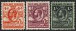 1929-37 KGV Whale & Penguin 4d deep orange line perf 13½, 6d reddish purple, line perf 13½ & 1/- black/bright emerald, line perf. VF fresh MLH. SG 120a, 121a & 122a cat £188. (3). (P)
