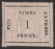 1870-71 Fiji Times Express 1d black/rose, on vertically ribbed paper. Superb fresh MLH with nice original gum, 4 large margins & clear rouletting. Scott 6 cat US$1250. SG 5 cat £1200. Unusually nice quality genuine mint example. Certificate can be obtained on request. (P)