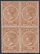 1882 QV 5/-dull red & black, blk of 4, UR stamp variety 'red arc above Fiji'. VF F/C, m/s initials & 5/98 date. SG 69/69a cat £355+ as singles, plus premium for rare se-tenant multiple. (4) (P)