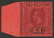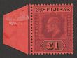 1906-12 KEVII £1 purple & black on red. Stamp VF fresh MUH, left marginal. Scott 78 cat US$360 for M, SG 124 cat £300 for M, should be at least double, £600 MUH. (P)