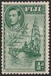 1938-55 KGVI Sailing Canoe ½d green, variety 'extra palm frond'. VFM. SG 249ba cat £140.