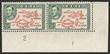 1938-55 KGVI Map 2½d brown & green, Die II, LR cnr marginal horiz pr with plate nos 1 & 2, perf 12, left stamp variety 'Extra Island.' VF fresh MUH. SG 256/256ca cat £113+ for singles, plus premium for positional se-tenant pr which should be +50%, so est cat £170. (P)