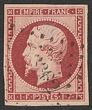 1853-61 Napoleon 1Fr carmine. Superb U, light cancel, 4 margins & nice deep colour. SG 72 cat £4000. Yv 18 cat €3400 Unusually nice quality genuine example of this rare classic. 2023 Cilio photo-cert. (P)