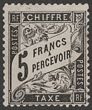 1881-92 Postage Due 5Fr black. VFU appearance, expertly repaired UL cnr perf, light cancel. Scott J25 cat US$1600. Yv T24 cat €2000, SG D295 cat £2500. Rare genuine example. (P)