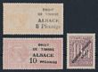 1915 Occup of Alsace & Lorraine 'Republique Francaise Alsace' type A opt German Stamp Duty revenue 40pf, inscr 'Elsass-Lothringen', plus 'Droit De Timbre Alsace 5 Pfennigs' 5pf orange & 10pfg rose, French revenue designs. F-VF fresh MUH. Yv 161 & 171-72 cat €155 for M, plus premium MUH. Very scarce. (3) (P)