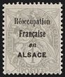 1915 'Reoccupation Francaise en ALSACE' opt Blanc 1c grey, framed opt type, unissued essay. VF fresh M. Maury 2AII cat €475. Very rare. 2019 Scheller photo cert. (P)