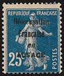 1915 'Reoccupation Francaise en ALSACE' opt Sower 25c blue, unframed opt type, unissued essay. VF fresh M. Maury 2HI cat €450. Very rare. 2019 Scheller photo cert. (P)