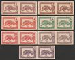 Congo: 1900-04 Leopard 1c-15c, horiz prs imperf proof colour trials on thin card, plus 15c shade. VF UN as made, all 4 margins. SG 36-41(p). Yv 27f-32f cat €420. (14) (P)