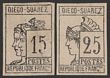 Diego Suarez: 1890 typeset Pictorial 15c & 25c black. Fresh M, tiny thins, 4 margins & VF appearance. SG 8 & 9 cat £475. Yv 8 & 9 cat €620. Exp Scheller. (2) (P)