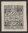 Diego Suarez: 1891 Postage Due typeset 50c black/buff. Superb fresh M, 4 margins. Scott J2 cat US$260, SG D12 cat £275. Yv TT2 cat €320. Only 1500 printed. Exp Scheller. (P)