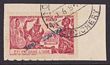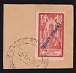 India: 1941 'FRANCE LIBRE' blue opt Brahma 18ca vermilion & carmine, error INVERTED h/s opt from 2nd printing. VFU on piece. SG 141(var) cat £750 as normal, plus premium for inverted, Yv 139a cat €1500+. Key stamp as normal, extremely rare as invert error. (P)