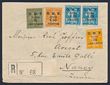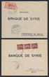 Syria: 1925 Registered covers with 1924 'Syrie' opt 3Pi/60c & 5Pi/1Fr tied by 'Damas 13 2 25' cds 7 opt 0P50/10c green, 1Pi50/30c orange, 2Pi/35c violet & 3Pi/60c lilac, tied by 'Damas 15 4 25' cds. SG 154, 157, 145, 150, 151 & 155 cat £53 as loose stamps alone. (2)