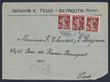 Lebanon: 1921-22 covers franked 1921 opt 'OMF Syrie' 1Pi/20c strip of 3, or 2Pi/40c - all tied by Beyrouth cds. SG 72 & 73. (2)