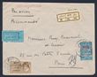 Syria: 1947 Registered Airmail cover from French Legation franked 1945 Government 100Pi brown & Fiscal 5Pi blue opt, tied by 'Damas 20 1 47' cds. SG 408 & T426 cat £46 as loose stamps alone. To Paris with arrival b/s.