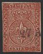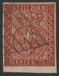Parma: 1853-55 Arms 25c red-brown. VFU, 4 margins. SG 14 cat £600. Sass 8 cat €1000. (P) |