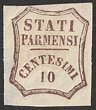 Parma: 1859 Provisional Govt 10c deep brown. VF fresh M with original gum, thin LL, 4 margins. SG 30 cat £1400. Sass 14a cat €2200. (P) |