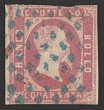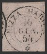 Sardinia: 1853 King Embossed 40c pale rose on coloured paper. Superb U, with '16 Genna 10 1854' cds, 4 large margins. SG 11 cat £1300. Sass 6 cat €1600. Rare genuine. 2014 Bottacchi photo cert. (P) |