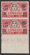Libya: 1927-33 Express 1.25L/60c blue opt lower marginal vertical pr, error IMPERF horiz at base & between stamps. VF fresh MUH. SG E64(var). Sass E12k cat €2250. Extremely rare. 2015 Dr Colla AIEP photo cert. (P) |