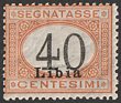 Libya: 1930 opt Postage Due 40c orange with value in BLACK (instead of red). VF fresh MLH, almost MUH, characteristic centring. SG D21a cat £7000. Sass S11A cat €10,000. Very rare genuine as only 1 sheet was discovered in 1930 in Benghazi. Exp Enzo Diena AIEP, plus 2025 Ceremuga photo cert. (P) |