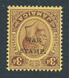 1916 WAR STAMP opt KGV 3d purple on lemon, error opt type 20 INVERTED. VF fresh MUH. Scott MR6d cat US$325 for M. SG 72aa cat £325 for M, should be at least double, £650 MUH. Copy of 2005 BPA photo cert for blk it came from. (P) |
