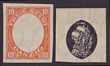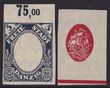 1921 Ship 5Mk red & slate,2 imperf PROOFS, 1 with frame only, the other centre only, both wmk large honeycomb, the frame only is top marginal with 75,00 in margin. Mi 61Ph1-2 cat €600, SG 52(p). 2014 Ceremuga photo cert. (2). (P)