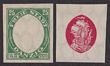 1921 Ship 25pf carmine & green, 2 imperf PROOFS, 1 with frame only, the other centre only, both wmk large honeycomb. VF fresh MUH. Mi 55Ph1-2 cat €600, SG 46(p). 2014 Ceremuga AIEP photo cert. (2). (P)