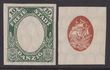 1921 Ship 2Mk deep green & blue, 2 imperf PROOFS, 1 with frame only, the other centre only, both wmk large honeycomb. Superb fresh MUH. Mi 59Ph1-2 cat €600, SG 50(p). 2014 Ceremuga AIEP photo cert. (2). (P)