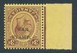 1916 WAR STAMP opt KGV 3d purple on lemon, error opt type 20 INVERTED. VF fresh MUH, left marginal. Scott MR6d cat US$325 for M, SG 72aa cat £325 for M, should be at least double, £650 MUH. Copy of 2005 BPA photo cert for blk it came from. (P) |
