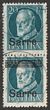 1920 Saare bars opt Bavaria 20pf blue, error opt shifted with 'Bayern' not obliterated. VFU, normal to compare. SG 21(var). Mi 21(var). (2). (P)