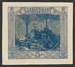 1921 Pictorial 25Mk blue, black & red on thin paper imperf DIE PROOF with uncleared margins (68x79mm). Superb fresh UN as made. SG 38(p). Mi 69PI listed but unpriced while could cat €600 as normal imperf. (P)